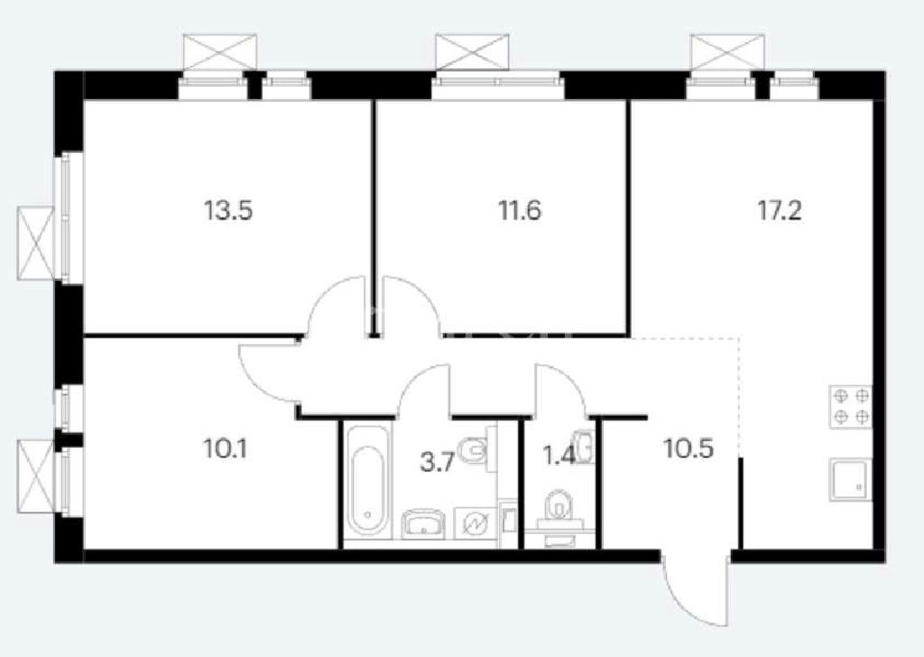 Просторная кухня-гостиная, три изолированные спальни, два санузла, с ванной и отдельный, много мест для хранения.